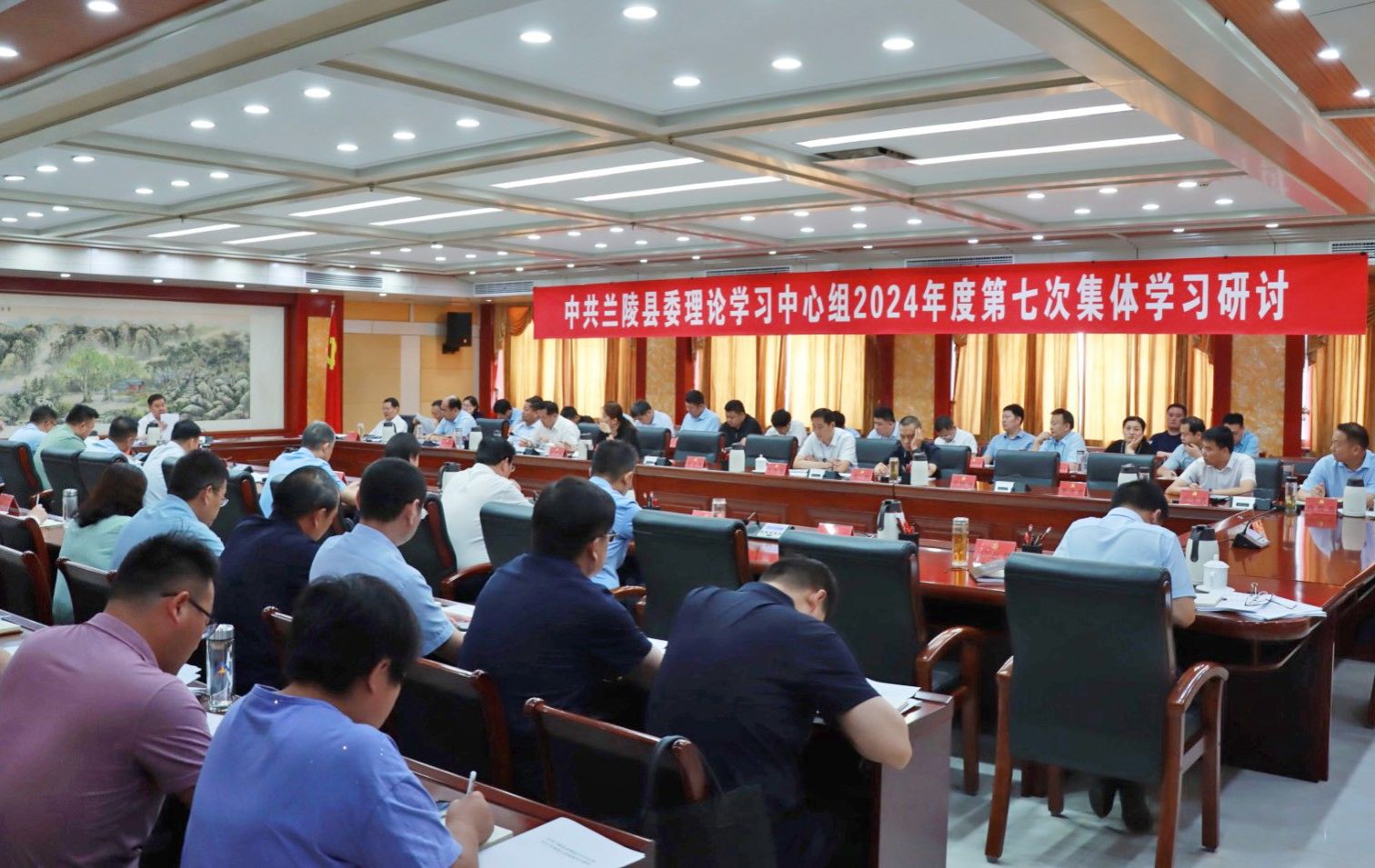 兰陵融媒讯 7月13日,县委理论学习中心组举行2024年度第七次集体学习。县委书记王康亮主持并讲话,县委理论学习中心组成员参加学习。
