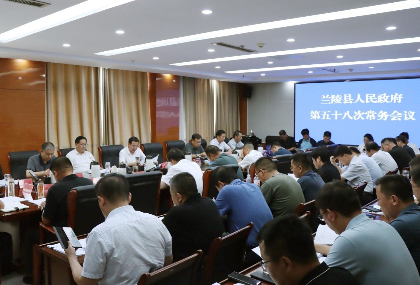 兰陵融媒讯 7月30日,县委副书记、县长李春仲主持召开县政府第五十八次常务会议,传达学习习近平总书记在二十届中共中央政治局第十五次集体学习上的重要讲话精神,研究贯彻落实全市循环农业现场推进会议、全市服务业高质量发展交流培训会议、市推进黄河流域生态保护和高质量发展领导小组会议、全市耕地保护工作会议,审议《兰陵县推动大规模设备更新和消费品以旧换新工作方案》,安排部署下步任务。县领导张学超、张其伟、朱元峰、张新玉、李怀疑、刘英、张鹏参加会议,部分人大代表、政协委员、群众代表列席会议。