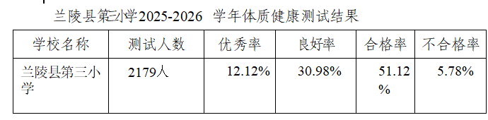 测试结束后,兰陵县第三小学安排专人对测试数据进行整理、分析,形成详细的测试报告,全面掌握学生体质健康状况,针对测试中发现的问题,制定针对性的改进措施。同时,及时将测试结果反馈给学生和家长,引导学生重视体质健康,主动参与体育锻炼。本学年兰陵县第三小学学生体质健康测试具体统计情况如下: